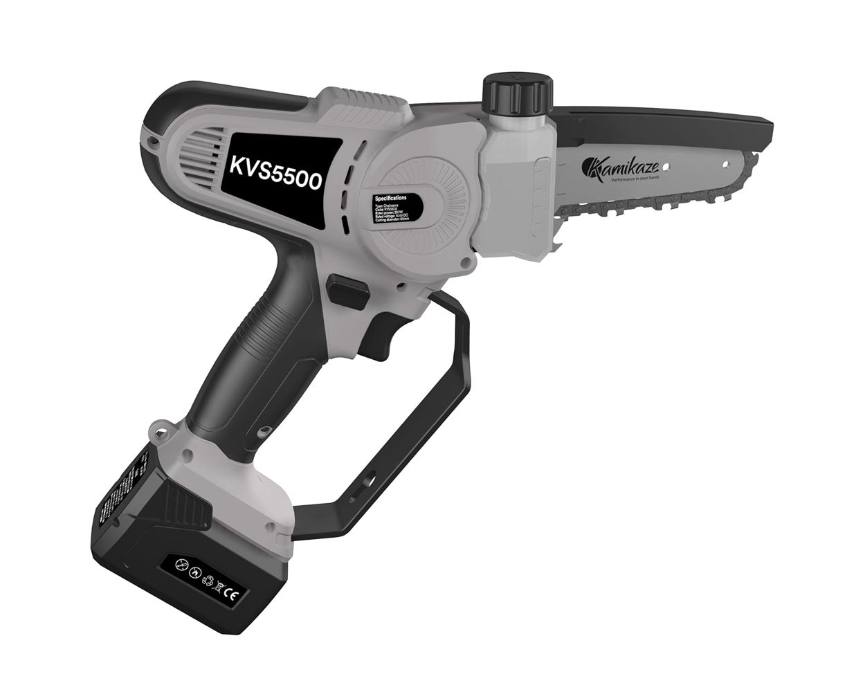 If you are looking for a high quality tool to prune branches and saplings with efficiency and precision, the KVS 5500 battery-powered chainsaw from Kamikaze is an excellent option suitable for semi-professional use.