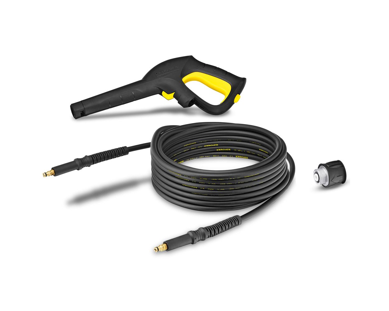 Replacement Kärcher high-pressure hose and gun with a screw adaptor to change to the practical quick connect system.