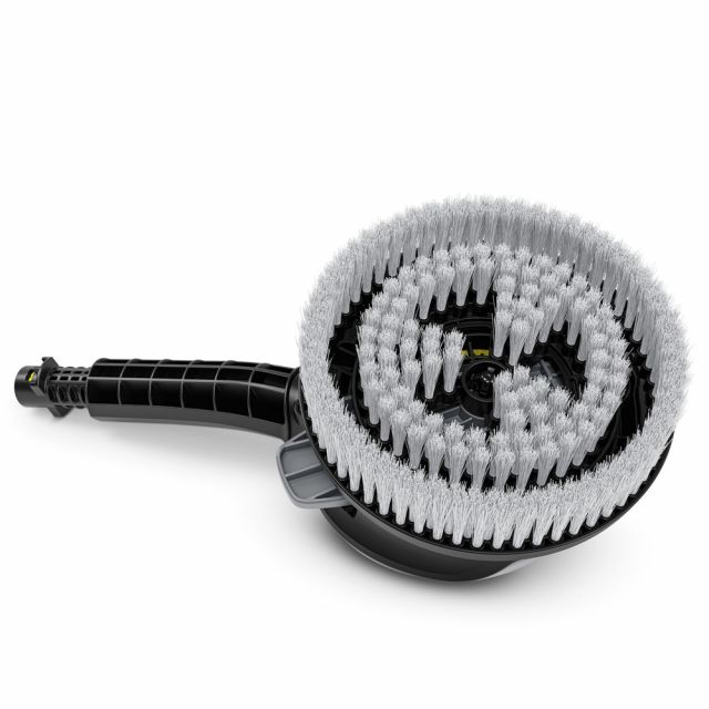 The twin-jet rotating arm removes dirt from large surfaces, saving approximately 50 per cent of your time when compared to cleaning with a spray lance. The addition of the power nozzle also guarantees effective cleaning in corners and edges. Thanks to the integrated rinsing nozzle, the loose dirt is simply washed away from the cleaned surface - saving time and effort afterwards. Hard surfaces, such as stone and concrete, and more delicate surfaces, such as wood, can both be cleaned by adjusting the distance between the nozzle and the surface to be cleaned.