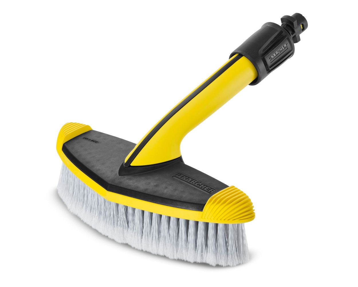 In addition to superior cleaning power, the soft bristles are kind to surfaces. The outer protector ring protects surfaces against scratches. The Kärcher WB 60 soft wash brush includes a union nut for a secure spray gun connection and a rubber pad to help remove stubborn dirt, e.g. insects and ergonomic handle for ease of use.