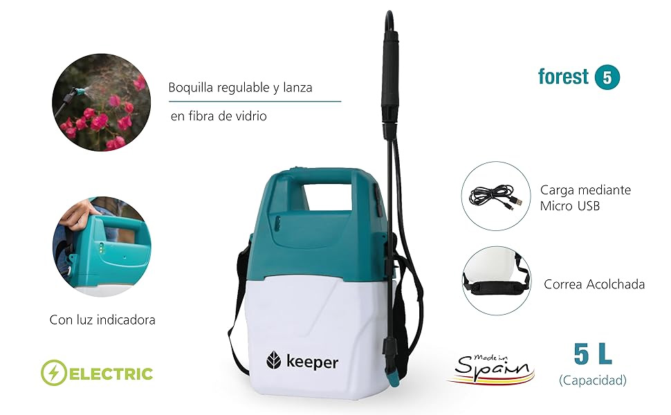 The Keeper Forest 5 is a handy companion for working in the garden or greenhouse, designed to be extremely comfortable and ergonomic in terms of handling and operation. This prevents the tedious task of pumping the liquid with your finger or with a lever, which is laborious when spraying for a prolonged time.