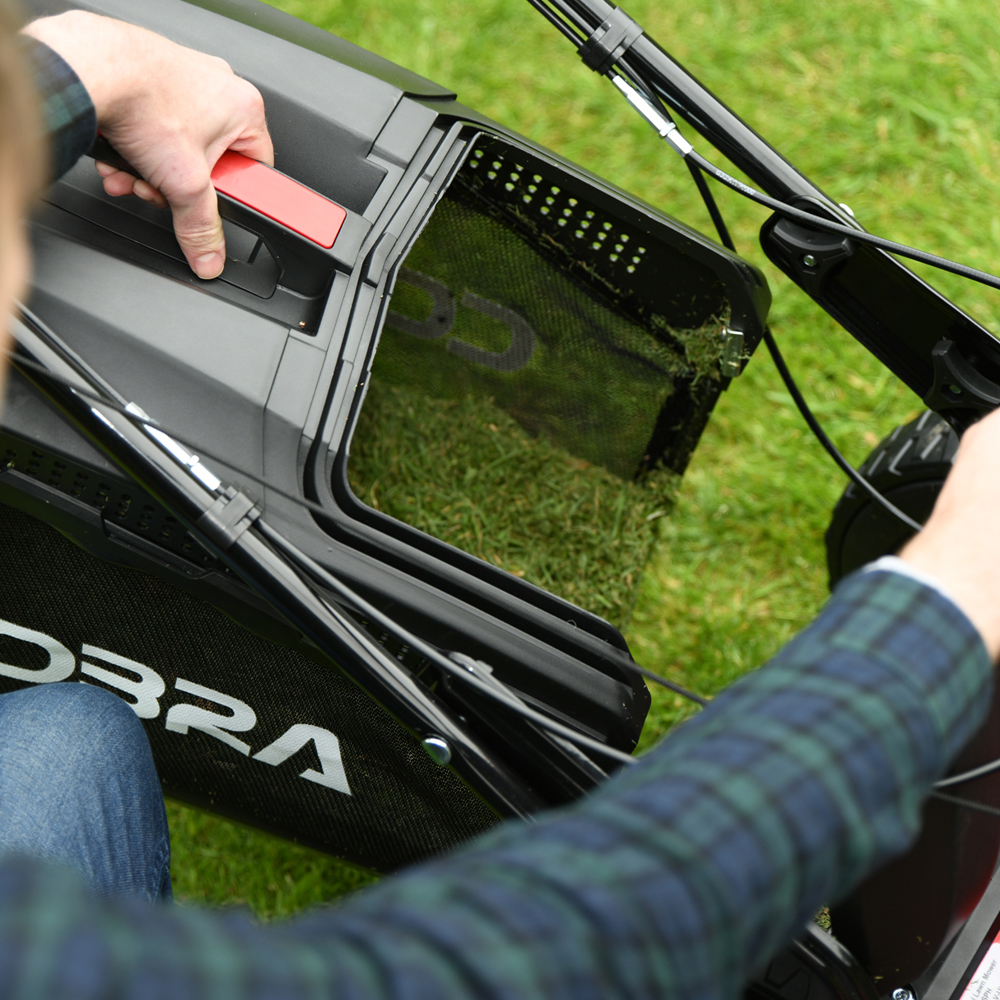 The Cobra RM46SPBR is equipped with a 60 litre fabric grass bag, ideal for collecting large amounts of grass clippings before the need for emptying. This fabric enables a strong free flow of air which results in an even more compact and comprehensive grass collection on this lawn mower.