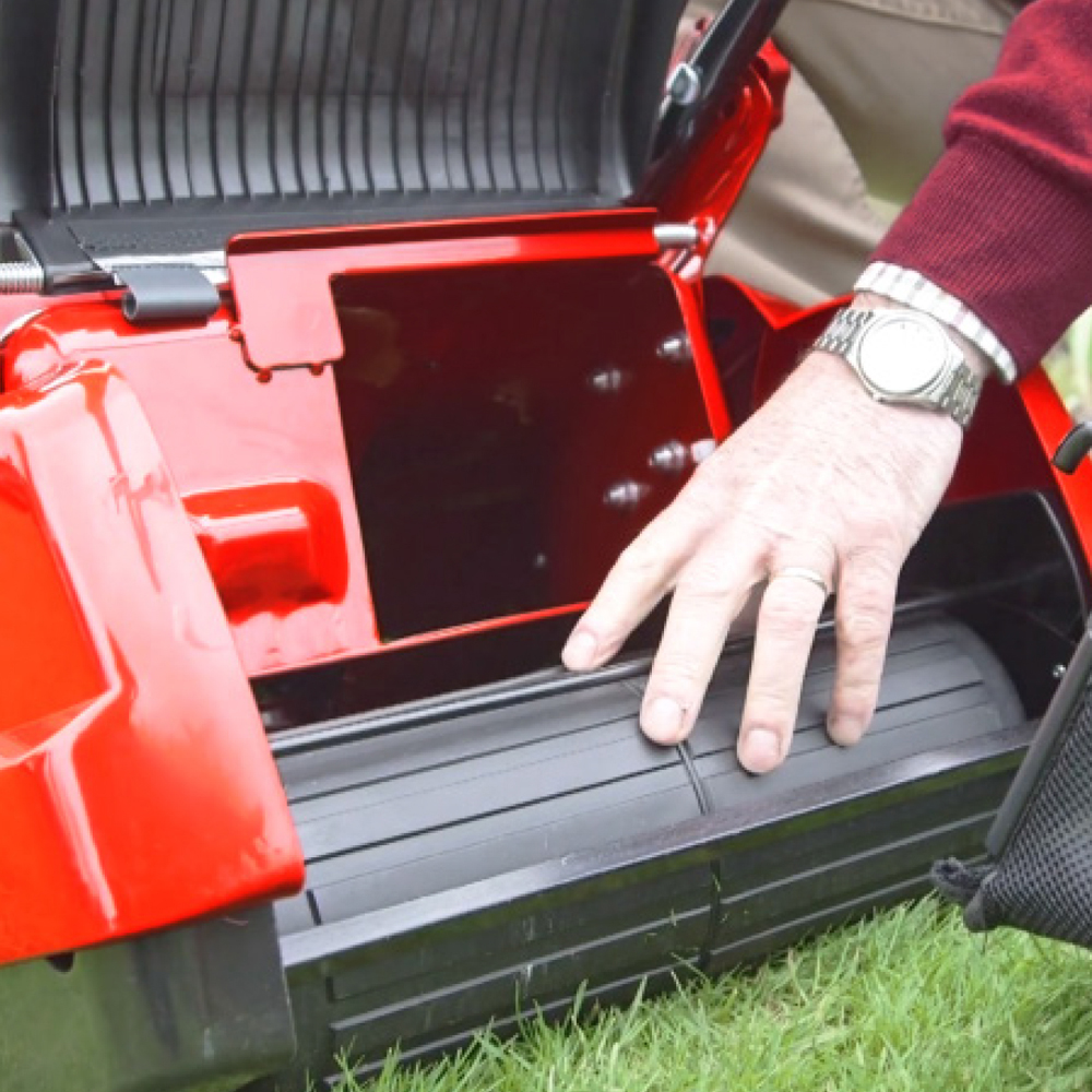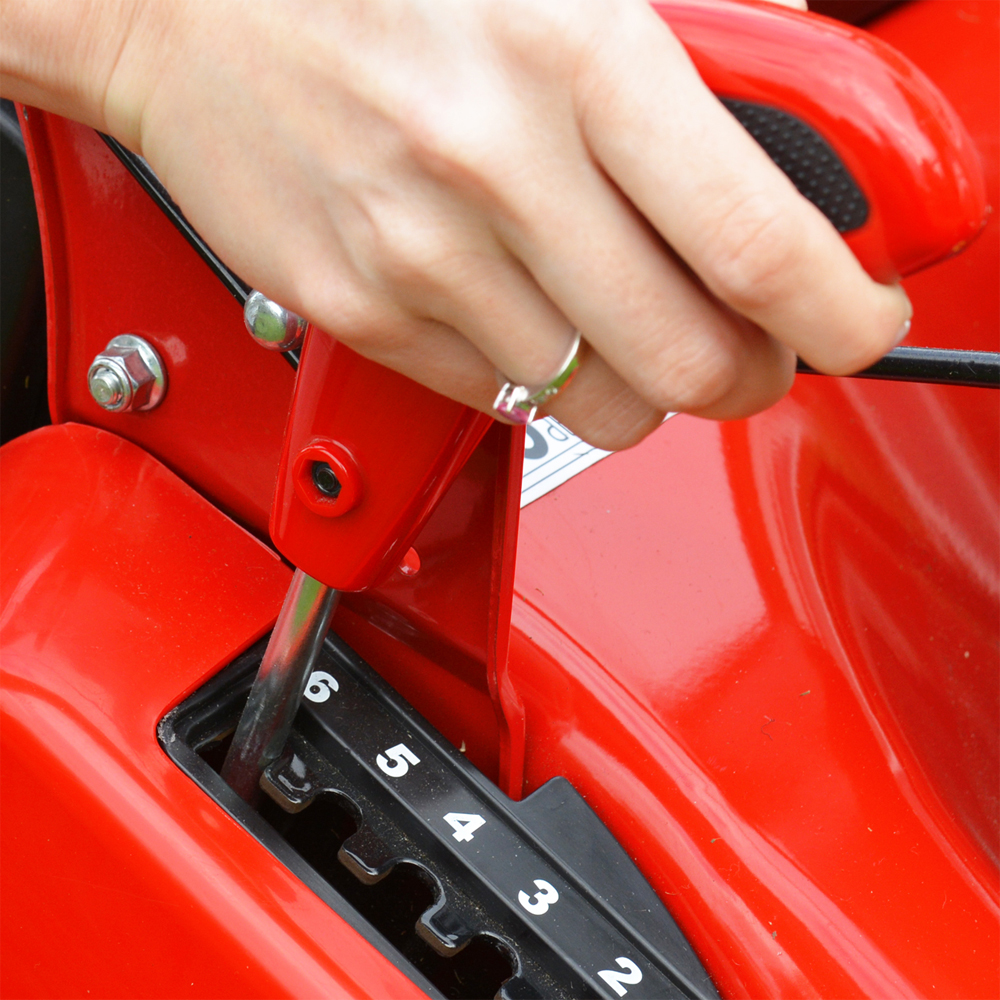 Single lever 6 stage height of cut adjustmentWith a fully adjustable six cutting heights ranging from 17mm for a superb low finish, up to 75mm for tackling longer grass. All this is achieved by simply using the single lever height of cut adjustment level which has been conveniently positioned next to the rear roller. |