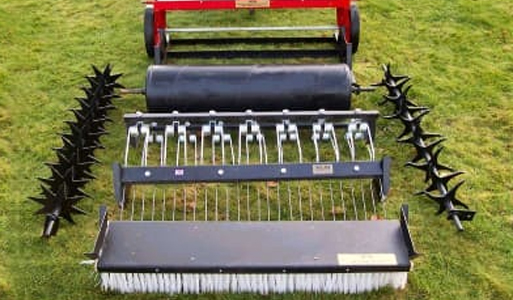 The Green Reaper has an impressive selection of lawn and grass care systems to maintain your grounds. Available in 36", 40", 48" and 60" widths, this turf care equipment will tow behind all makes of lawn tractor or ATV. These lawn care systems, from leading manufacturers SCH and Agri-Fab, comprise a carrier frame or base unit and various attachment options.