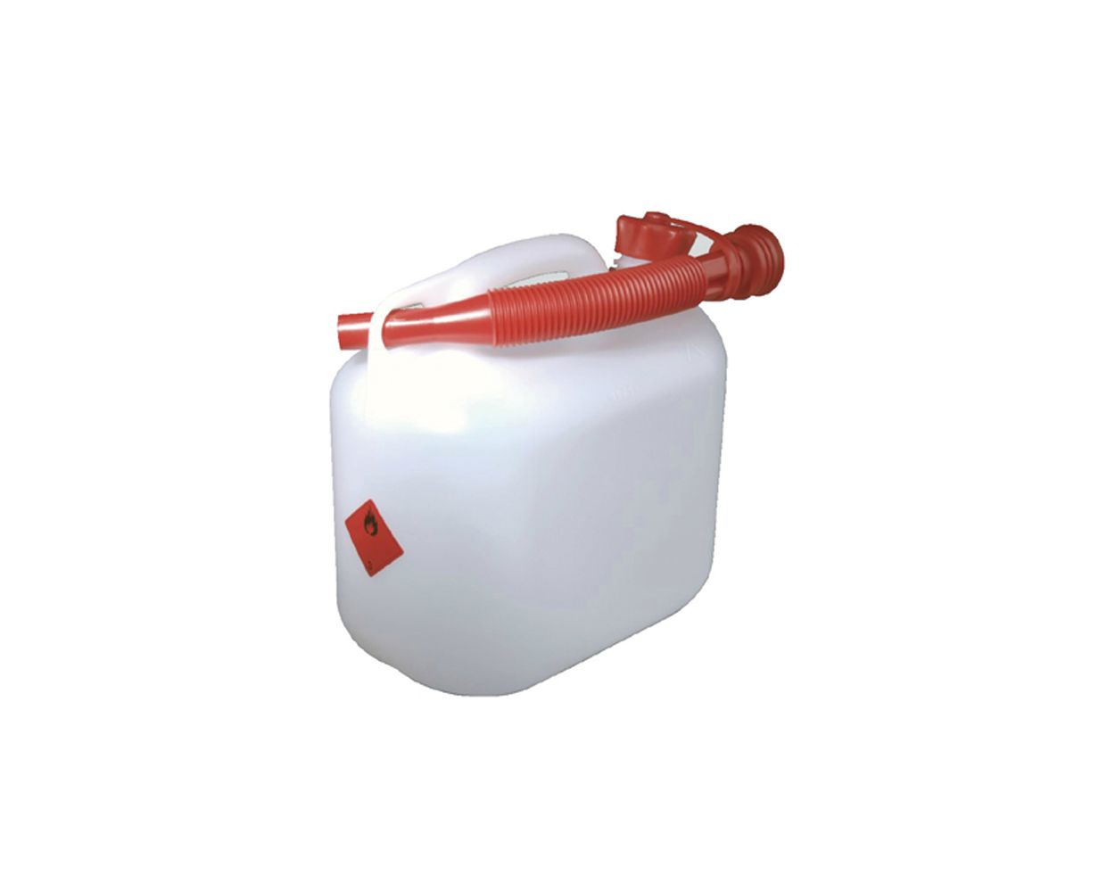 Complete with pouring spout and safety cap, this five litre transparent fuel can meets the highest safety requirements.