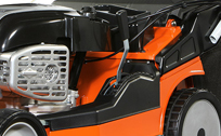The Blade Brake Clutch (BBC) enables the disengagement of the drive to the blade when the user releases the safety handle. This allows the emptying of the grass collector with the engine running but without the blade rotating therefore increasing safety and productivity.