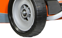 The quality of the Oleo-Mac LUX 55 TBI lawn mower remains undiminished over time thanks to the aluminium deck which is protected at the front and sides by strong, amply proportioned metal guards. The large diameter wheels guarantee smooth progress on any type of terrain.