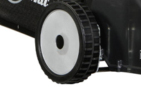 Large diameter aluminium wheels (208mm front, 235mm rear) with ball bearings and replaceable tyres. |