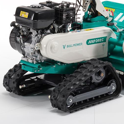 Crawler TracksThe Orec HRC series flail mowers are equipped with a tracked advancement unit. The steering clutches allow one of the tracks to be locked, thus ensuring simple and safe steering. |