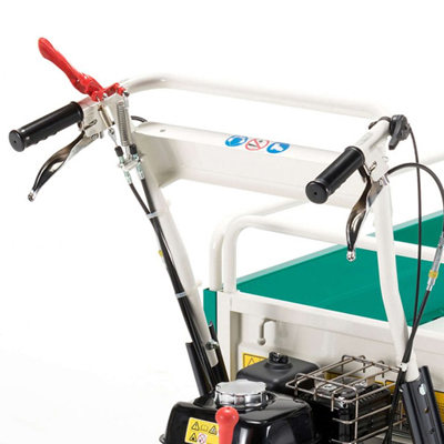 ControlsThe ergonomic controls are extremely easy to operate and ensure extreme manoeuvrability and precision. The steering can be adjusted thanks to the control levers. By simply pressing one or other of the levers, the wheelbarrow will steer to the left or right. |