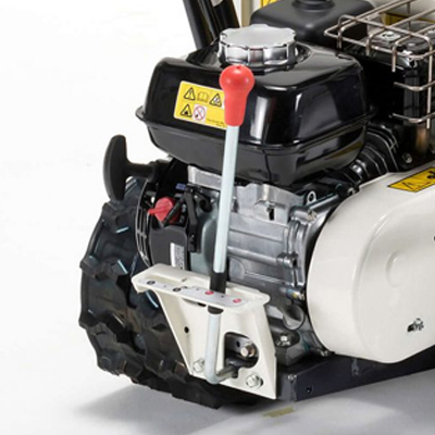 Powered by a 122cc professional Honda GX120 four-stroke engine with overhead valve technology at the rear and with front transmission, the machine is perfectly balanced during use. The mechanical transmission has two forward and two reverse speeds.