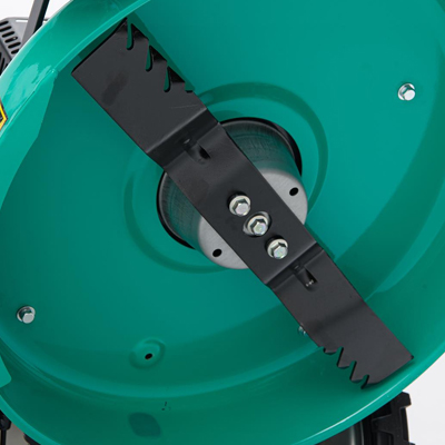 The Orec MG530 is equipped with an aluminum gearbox with three forward gears and one reverse gear enabling efficient manoeuvring of the mower. The differential lock, combined with rear wheels with a large tread area, ensure safe adherence of the machine to the ground, even on sloped, uneven or muddy ground.