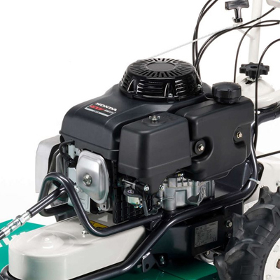 Powered by a Honda GXV340 four-stroke engine with overhead valve technology, the Orec SH71H features a professional four-speed aluminum gearbox with three forward and one reverse gears which ensures even speeds on slopes up to 15 degrees. The infinitely-adjustable cutting height means the mower can be adapted to suit a wide variety of conditions.
