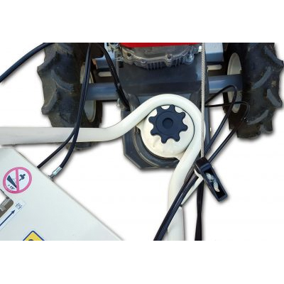 Safe blade engagement and disengagementThe blade is connected to the drive shaft via a belt so as to protect the machine from any impact damage. The blade is inserted with the tensioning of the belt via a control on the handlebar, the insertion takes place with two hands to guarantee maximum safety for the operator. The moment the operator lifts his hand from the handlebar, the blade disengages and stops immediately.