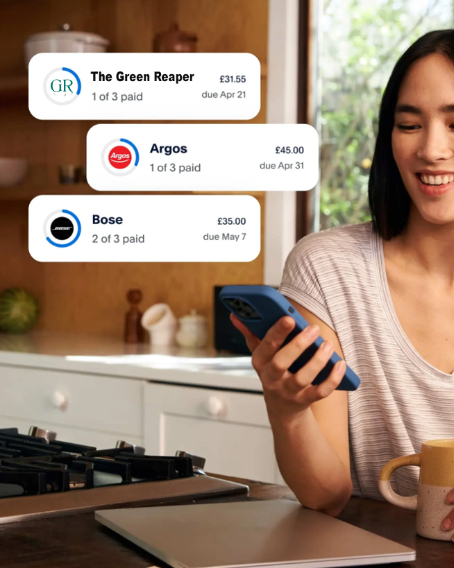Pay in 3Make the first payment at the time of purchase and make two more payments on the same date each month. Split your purchases of between £30 and £2,000 into three interest-free payments without late fees. |
