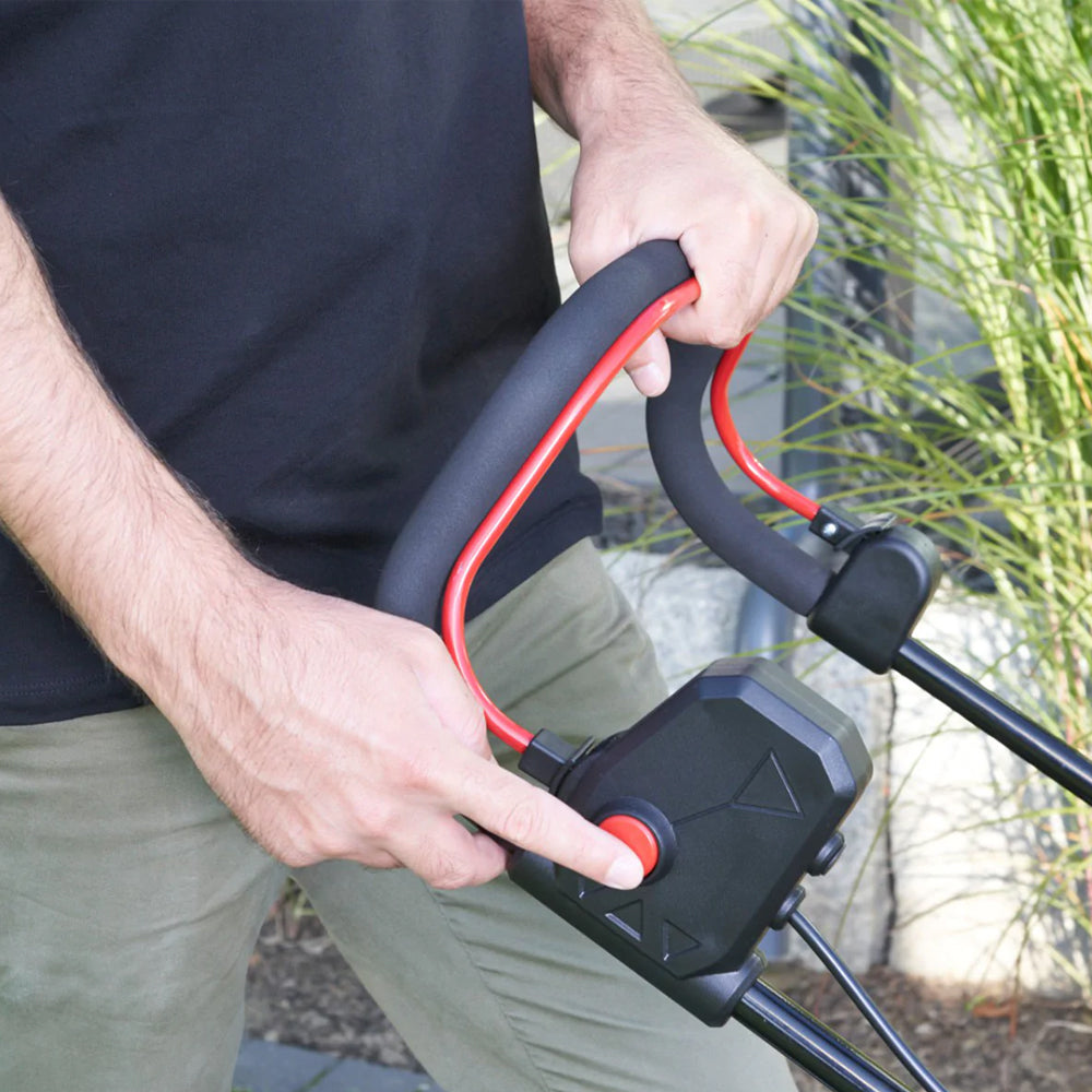 OTHER KEY FEATURESBattery HousingDual battery slots for extended run times. LED IndicatorLED battery indicator in clear sight. Efficient MotorThe motor offers high performance and efficiency for extended run times. Central Height of CutCentral adjustment over six positions from 20-75mm for different lawn types. Grass FinsIntegrated grass fins on the front and sides guide the grass into the cutter deck. Integral Rear RollerRear roller bar between the rear wheels for a traditional striped finish. Grass CollectorIntegrated fill level indicator. Carry HandleLightweight with integrated carry handle. Quick ReleaseStandard handles with fixed base and wingnut for folding down. |