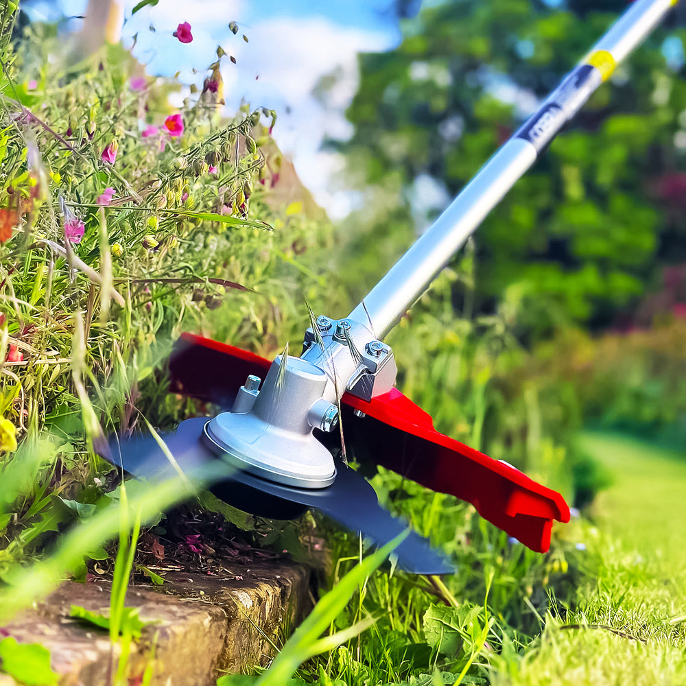 Easy-fit attachmentsOne of the standout features of the Cobra multi tool system is how quick and simple it is to attach accessories. To fit the brush cutter, just press the button on the shaft of the power head, slide the attachment in, listen for the reassuring "click" to confirm it's securely in place, then tighten the adjustment knob - and you're ready to start cutting. Swapping between attachments is just as fast, making it easy to adapt the tool for different garden tasks. |
