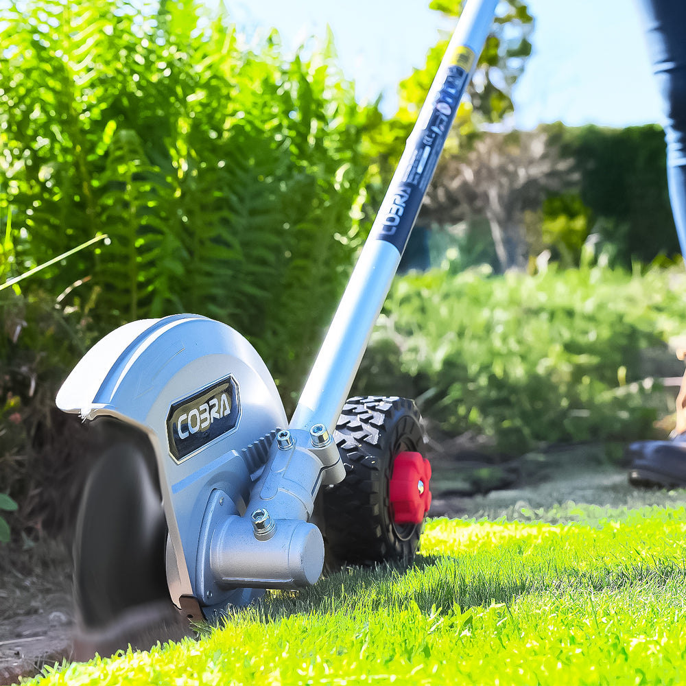 Easy-fit attachmentsOne of the standout features of the Cobra multi tool system is how quick and simple it is to attach accessories. To fit the lawn edger, just press the button on the shaft of the power head, slide the attachment in, listen for the reassuring "click" to confirm it's securely in place, then tighten the adjustment knob - and you're ready to start cutting. Swapping between attachments is just as fast, making it easy to adapt the tool for different garden tasks. |