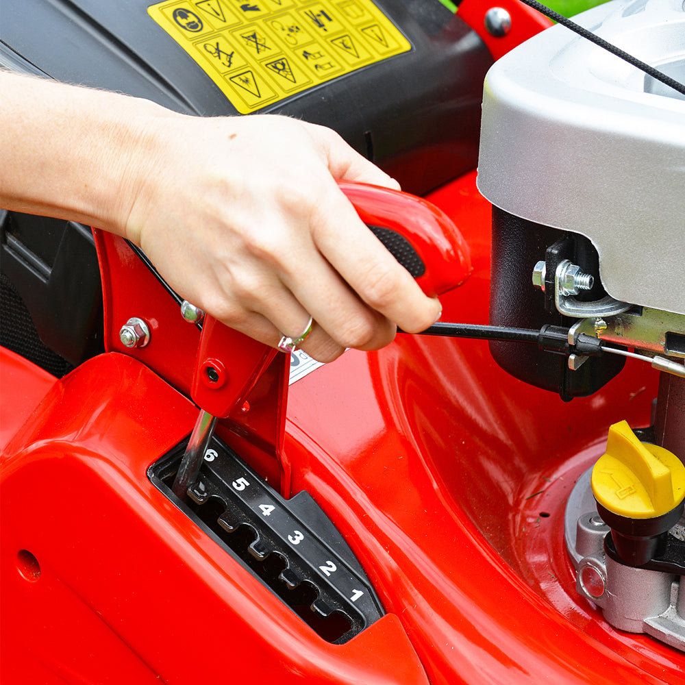 17-75mm cut heightsWith a fully adjustable six cutting heights ranging from 17mm for a superb low finish, up to 75mm for tackling longer grass, choose the Cobra RM514SPC. All this is achieved by simply using the single height of cut adjustment lever which has been conveniently positioned next to the steel rear roller. |