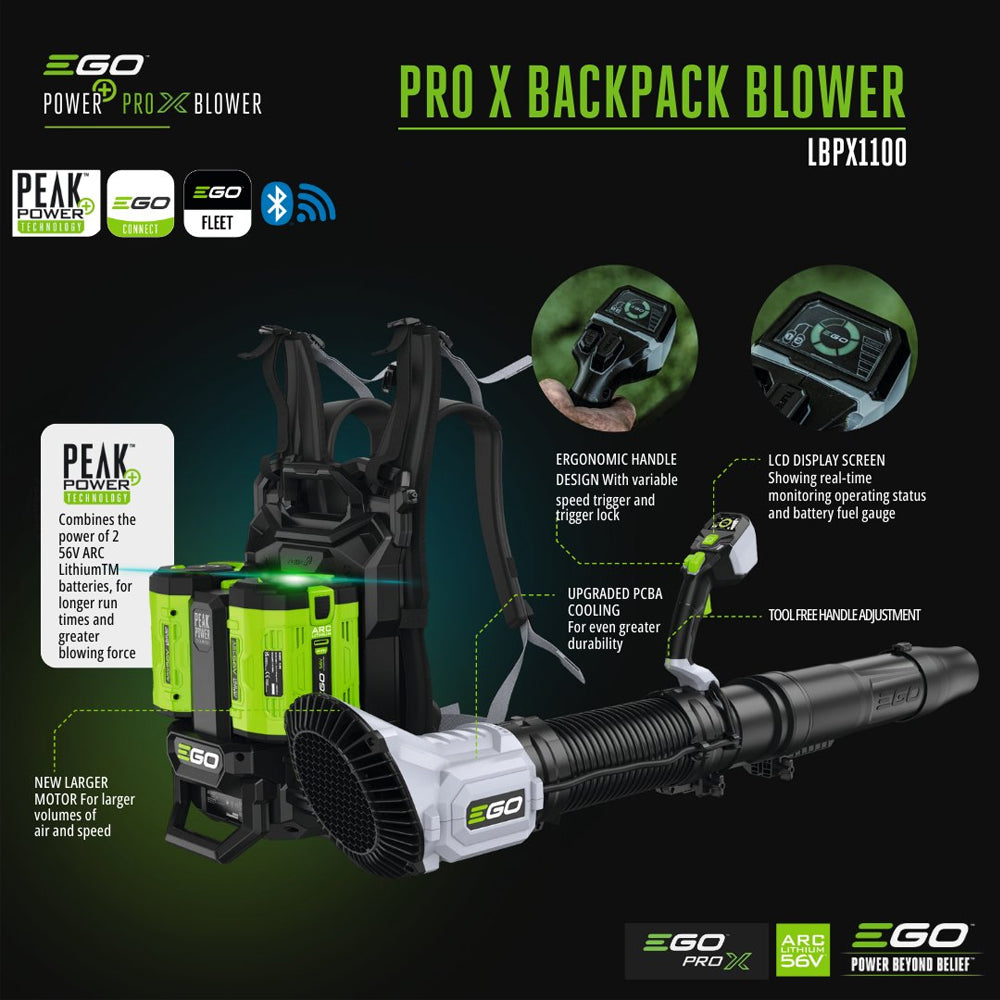 EGO Power+ LBPX1100 Pro X 1870m³/h 56V Cordless Backpack Leaf Blower (Bare Tool)