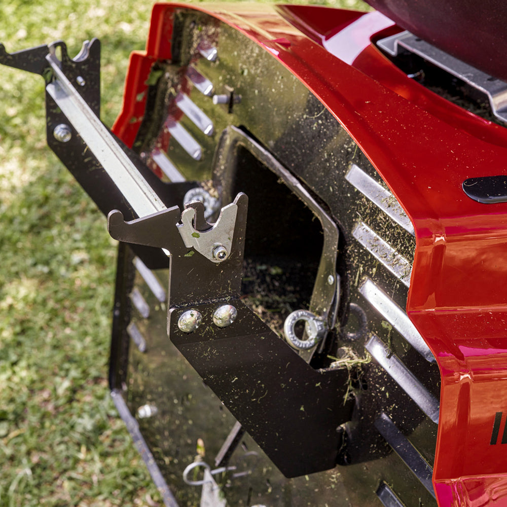 ![]() | New collector mountingThe collector has a completely new mounting structure further away from the lawn tractor. This allows quicker and easier mounting and dismounting of the collector. A new dual locking mechanism will firmly hold the collector in place in all situations. |
