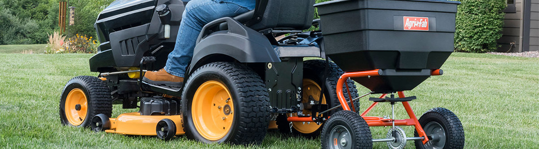 All Agri-Fab towed broadcast spreaders are fitted with a universal hitch pin and can be towed behind all makes of lawn tractor.