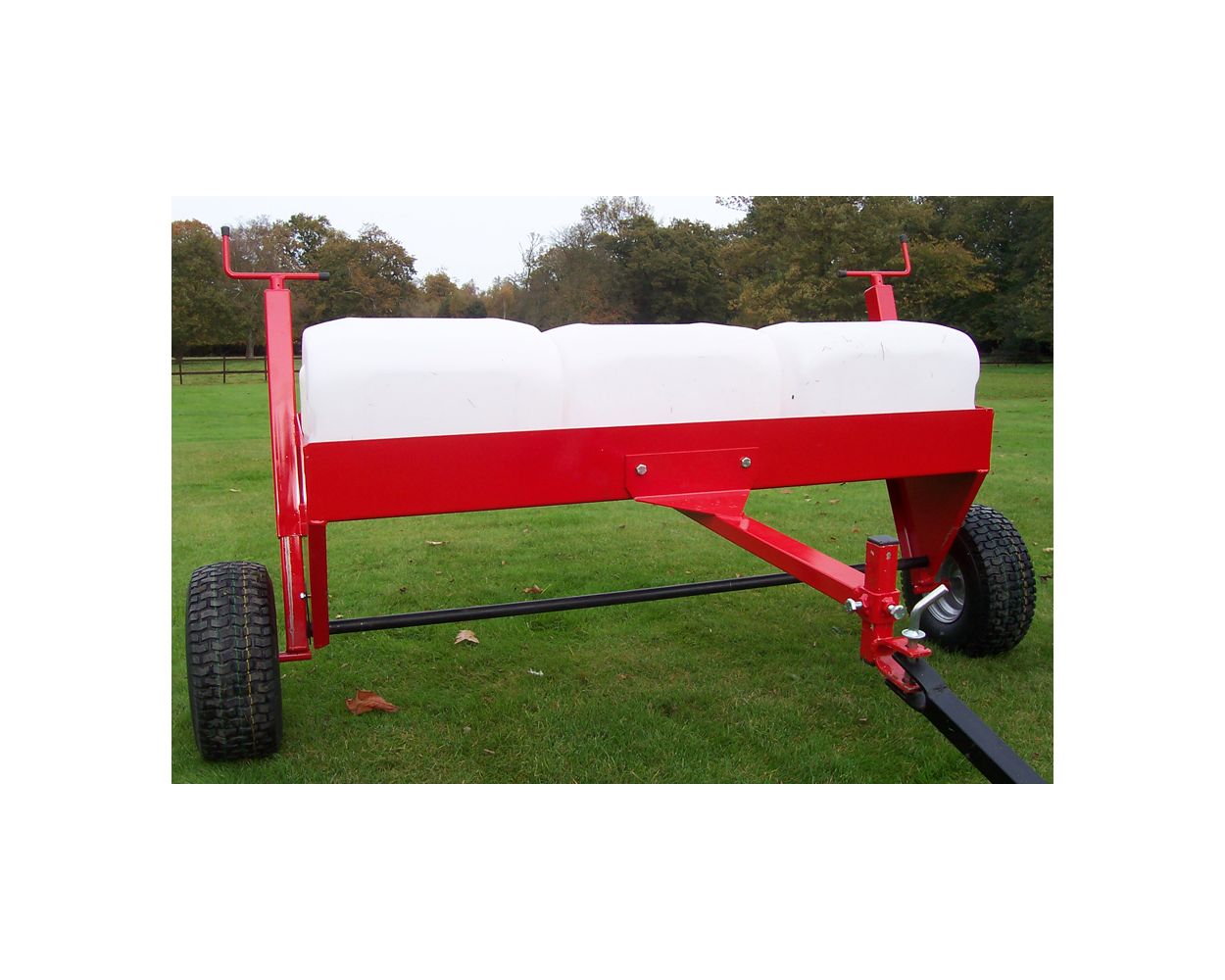The frame consists of two transport and depth control wheels which are adjusted by winding down jacklegs. The wheels are pneumatic wide profile with bearings. The frame has a weight tray and is supplied with three 25 litre water fillable ballast tanks. The towed carrier frame has an adjustable tow bar to accommodate most garden tractors draw bar heights.