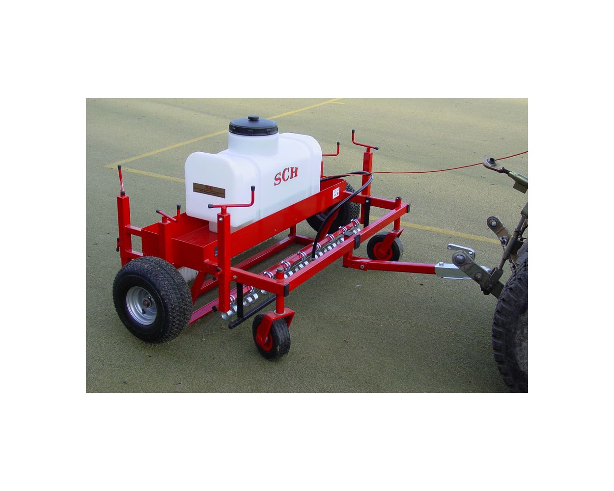 The SCH chemical applicator is fitted to the carrier frame to apply required chemical to long fibre synthetic sports surfaces, of which 3G is the most common at this time.