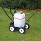 The sprayer pump is powered by its own rechargeable dry cell battery. The battery and charger are included with the unit. The compact sprayer is mounted on a chassis having four 200mm (8") rubber tyre wheels making it extremely stable and easy to manoeuvre.