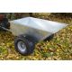 The SCH galvanised tipping dump trailer is fitted with wide profile flotation wheels with ball bearings and a 50mm ball hitch. The handle has been removed to prevent fouling the rear of the ATV and the tow bar has been extended to enable easier reversing.