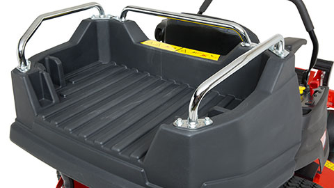 CARGO BEDThe rear cargo bed offers on-the-go versatility and convenience for working in the garden. Use it to carry tools, mulch, flowers, debris and more. It makes the zero turn mower more versatile than ever before. The cargo bed rails system accommodates ATV accessories for even more flexibility. |