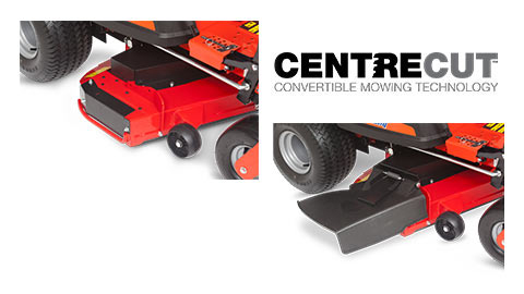 CENTRECUT™ MOWER DECKThe CentreCut™ mower deck comes in a pre-configured side or rear discharge version. With an optional kit you can easily convert to a different mowing configuration if needed. |