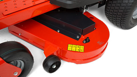 FABRICATED MOWER DECKThe rugged fabricated mower deck with reinforced top, side skirts, corners and a steel front edge ensures durability and a quality cut for years to come. |