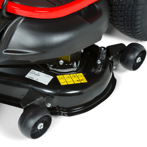 177cm rigid steel mower deckThe 117cm frame hung steel deck with four support wheels to protect the mower deck on uneven terrain. |