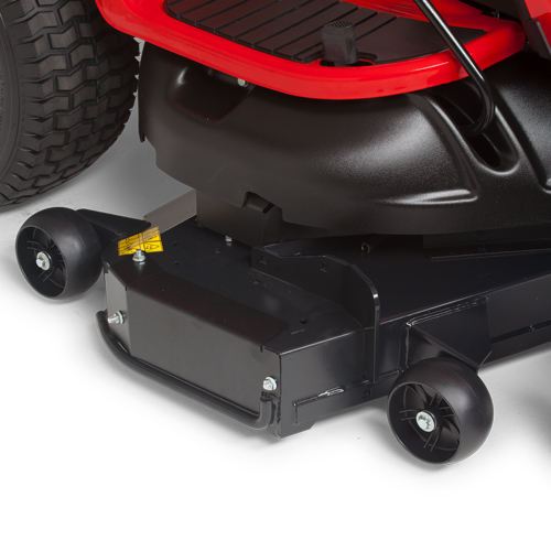 Cast-iron front axle for strength and superior steering controlThe cast-iron, pivoting front axle smoothly tracks over rough terrain for an even cut. |