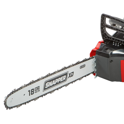 With its 46cm (18") Oregon guide bar and chain, 1200 watt brushless motor, and powered by a 2Ah lithium-ion Briggs & Stratton 82 volt battery (available to purchase separately, the Snapper SXDCS82 cordless chainsaw provides class-leading petrol type performance, reliability and less maintenance.