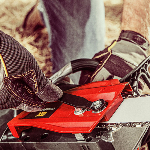 Onboard chain tension adjustment tool for hassle-free adjustmentOnboard chain adjustment tool can be used to adjust the chain and conveniently stores in the handle. |