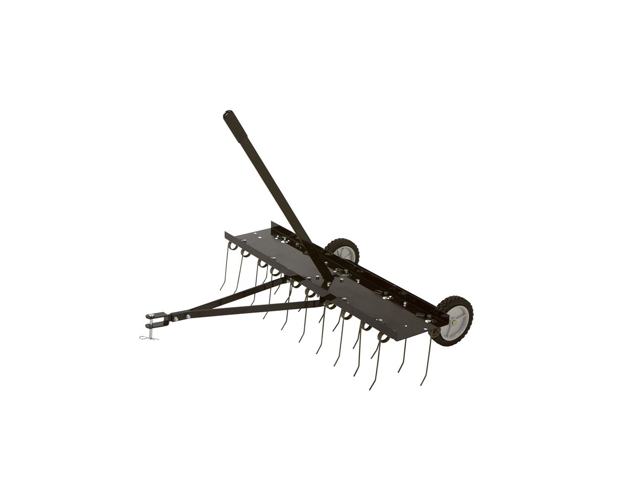 DEEP TURF RAKING – 24 spring steel tines help to rake the lawn, relieving compaction to boost root growth, drainage, and nutrient uptake across large areas.