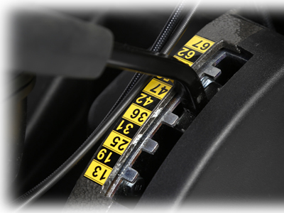 Central cutting height adjustmentThe cutting height of the rear roller mower can be quickly and easily set using a spring-assisted lever enabling the mower to cut at 11 different heights between 13 and 67mm. |