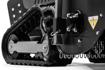 Suitable for working areas up to 6,000 square metres, the machine can reach drive speeds of up to 3.8km/h and can operate comfortably on a working angle of up to 25 degrees. The tracked flail mower offers three ways of operation; either traditional walk-behind, standing on the rear foot plate or, optionally, retro-fitting a remote control. The optional remote control kit allows the machine to be controlled remotely by the operator where conditions do not allow an operator presence such as steep banks.