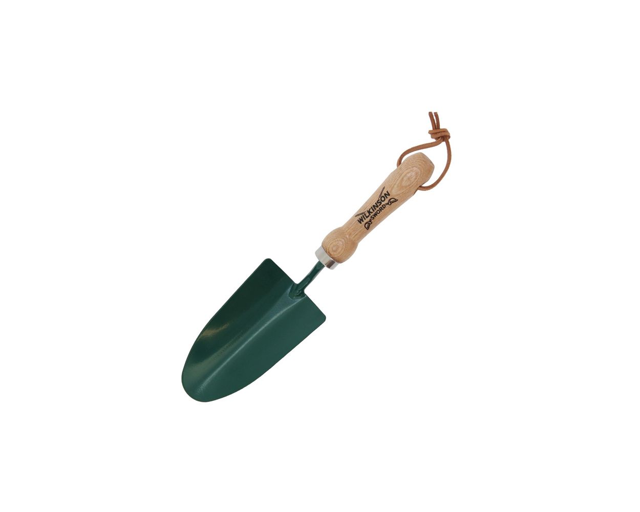 The Wilkinson Sword Carbon Steel Hand Trowel features a quality carbon steel head which provides strength and performance, ideal for small planting, transplanting and weeding tasks around the garden or in the greenhouse. A hard-wearing green epoxy resin coating adds durability to the tool head, whilst the natural wooden handle has a leather loop for hanging.