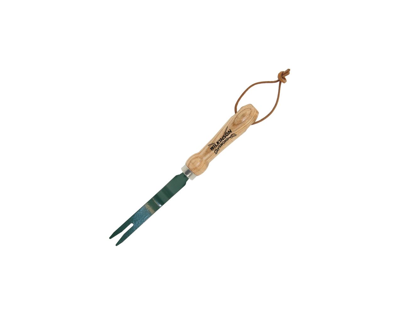 The Wilkinson Sword Carbon Steel Weed Grubber features a quality carbon steel head with a long and narrow, two-pronged design, ideal for prising out long-rooted weeds by hand, especially in the lawn. A hard-wearing green epoxy resin coating adds durability to the tool head, whilst the natural wooden handle has a leather loop for hanging.