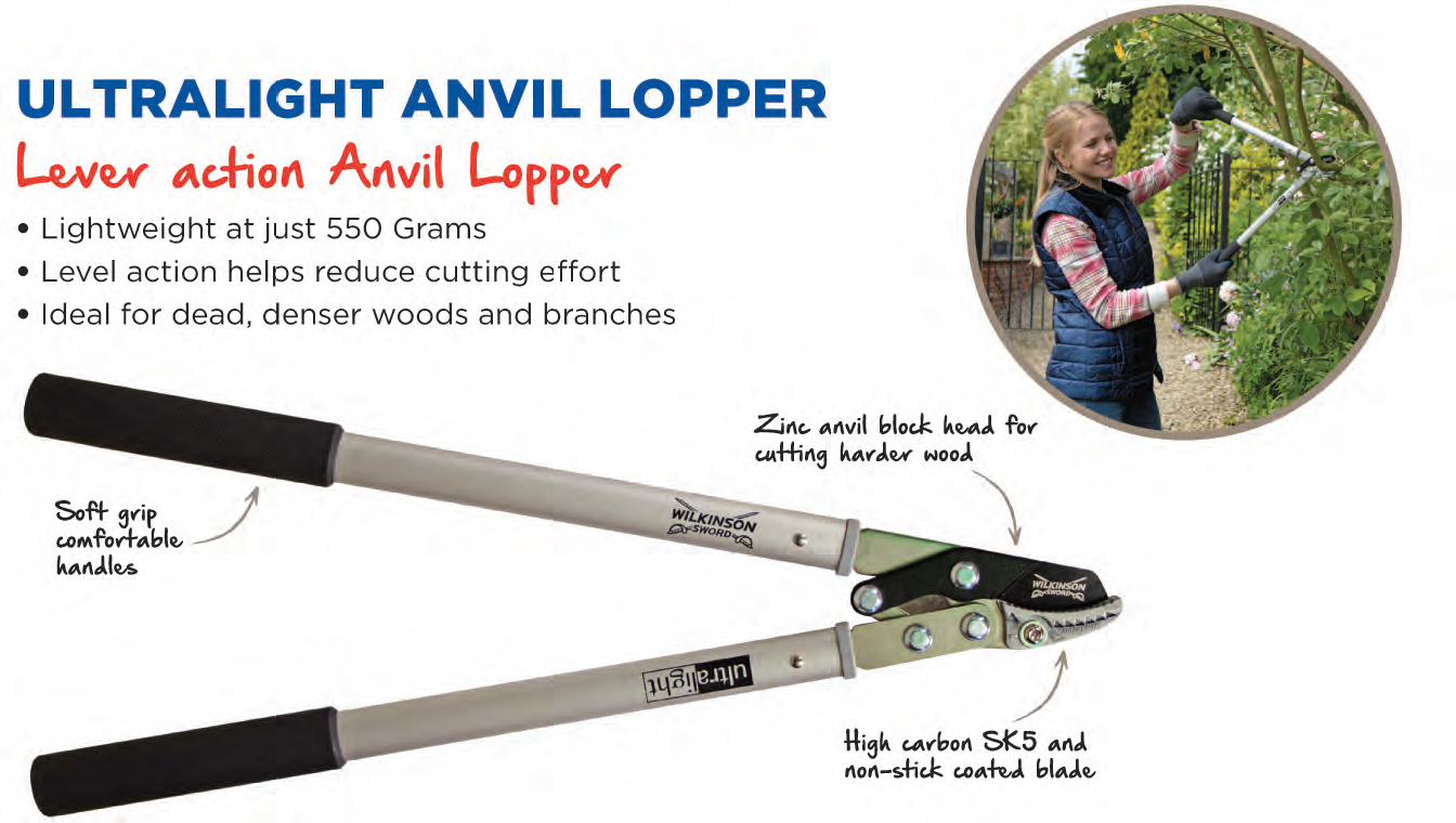 These Ultralight lever-action anvil loppers from Wilkinson Sword weigh just 550 grams and provide all the cutting performance you will need with none of the weight.